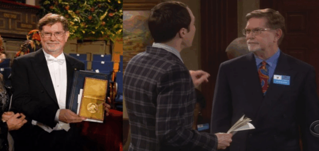 En la imagen, dos momentos de su vida: recibiendo el premio Nobel y como invitado especial en la serie The Big Bang Theory (Temporada 3, Episodio 21) – Apple TV.